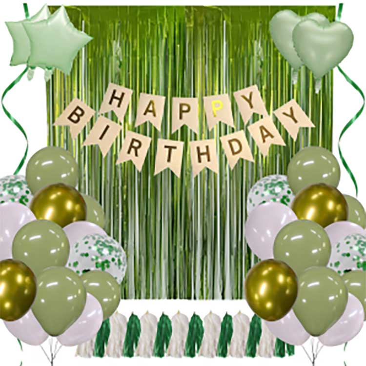 Os kits de decoração de aniversário são usados para decorar cenários ao comemorar aniversários e incluem balões de borracha, balões de alumínio, borlas, fitas, cortinas de alumínio, etc. Uma variedade de cores estão disponíveis, para que todos, desde crianças e adolescentes até adultos, possam encontrar um estilo que gostem. A personalização também está disponível se você tiver uma cor preferida.