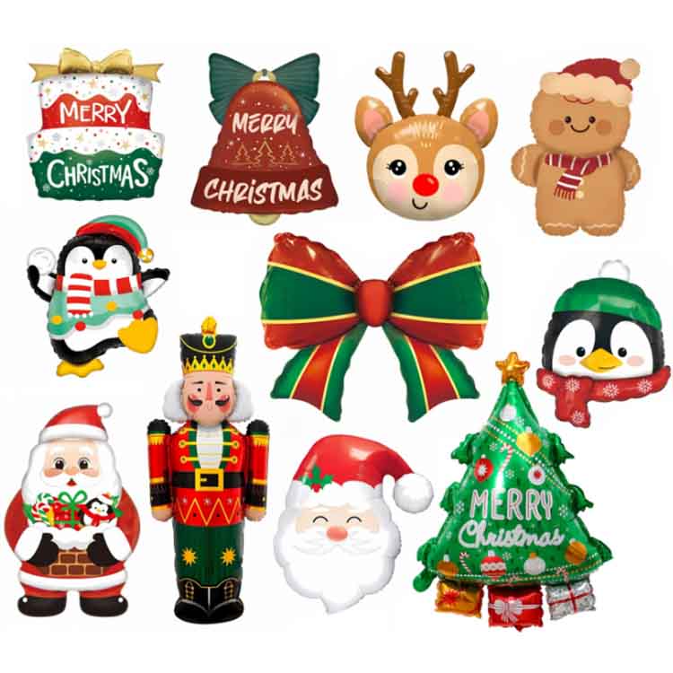 Os balões de folha de alumínio de Natal incorporam elementos natalinos em seus designs. Disponíveis em formatos clássicos como Papai Noel, árvores de Natal, flocos de neve e sinos, esses balões são adornados com slogans “Feliz Natal”. As cores incorporam elementos natalinos, principalmente apresentando cores com tema natalino como vermelho, verde, dourado e prata, criando uma atmosfera festiva. Disponíveis em uma ampla variedade de tamanhos, desde um mini 30cm até um gigante 100cm, atendem a uma variedade de cenários e necessidades decorativas.
