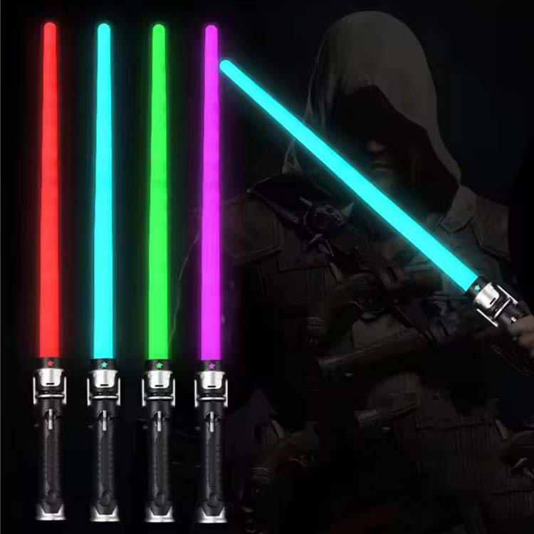Temos a espada fônica de laser elástica e longa e longa. Você pode escolher a cor e a embalagem que prefere.