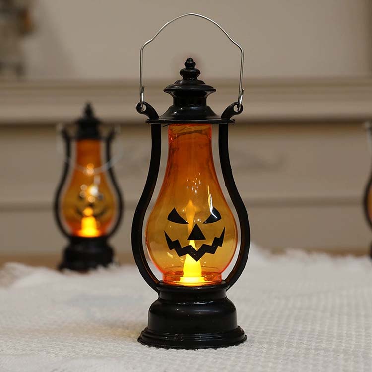 OLâmpada de vento de vela de Halloweené uma luz decorativa criativa especialmente projetada para a atmosfera festiva, integrando engenhosamente elementos tradicionais de Halloween com os modernos designs de segurança. A aparência é uma forma de vela retrô, com um abajur esculpido em metal esculpido ou vidro, e um pavio de LED para simular a luz de velas oscilantes, evitando o perigo de chamas abertas e é um suprimento de festa seguro.
