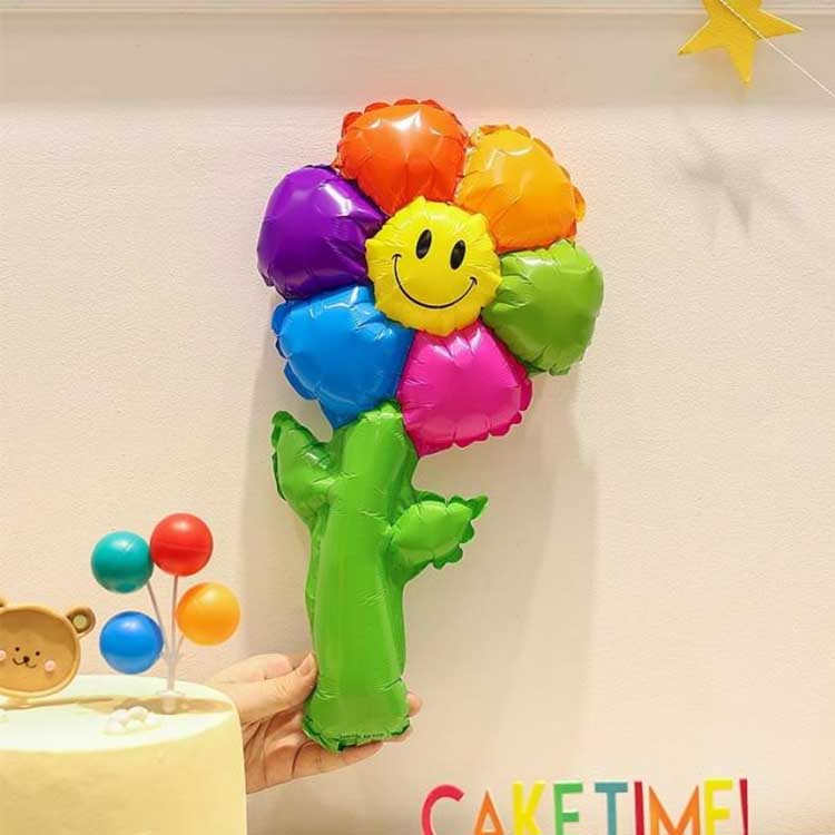 2. Excelente textura: a superfície dos balões de alumínio tem um brilho metálico e os padrões impressos (como o disco de girassol e as pétalas) são vibrantes, detalhados e duráveis, desbotados e resistentes a arranhões, tornando-os visualmente mais atraentes.