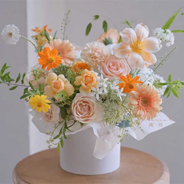Cores vivas: O design do balde de abraço apresenta cores energéticas e brilhantes. A clássica combinação de branco, rosa e amarelo cria um forte impacto visual; rosa, amarelo, vermelho, verde e outras cores também criam uma atmosfera calorosa e romântica. Essas cores não só chamam a atenção das pessoas, mas também criam um ambiente romântico.