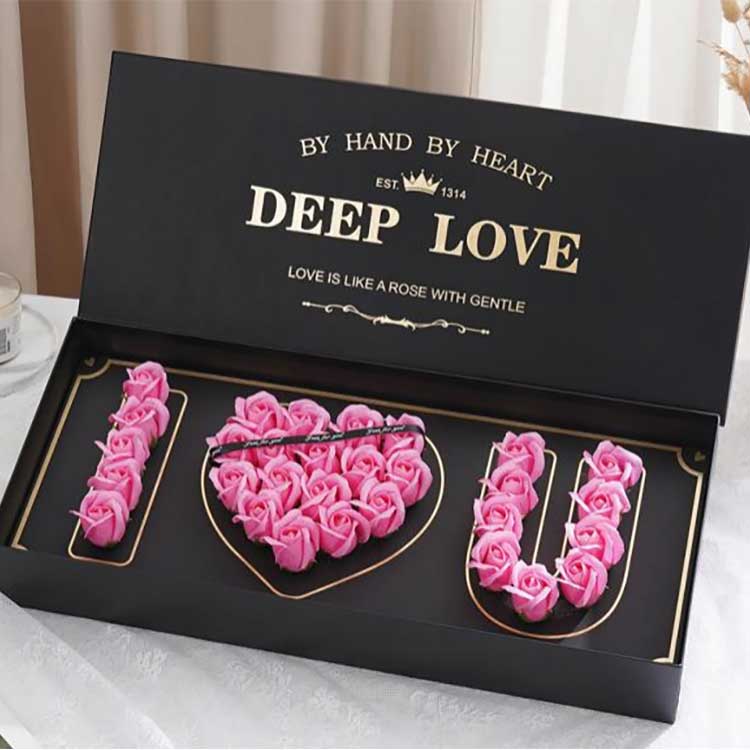 A caixa de flores Soap Rose Heads é adequada para o cenário principal de presentes do Dia dos Namorados, também é apropriada para o Dia das Mães, aniversários e muitos outros feriados emocionantes, tornando-a um presente de alta qualidade para transmitir amor e expressar gratidão. Também oferecemos serviços de logotipo corporativo personalizado, permitindo que o logotipo da sua empresa seja impresso na caixa de presente, tornando-o adequado para benefícios a funcionários ou presentes de agradecimento ao cliente. Isso não apenas faz com que o destinatário sinta sinceridade, mas também aproveita o poder promocional do presente para anunciar sua empresa de maneira eficaz, aumentar o reconhecimento da marca e alcançar o efeito duplo de valor do presente e promoção da marca.
